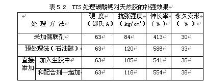 由表5.3可見,在熱塑性橡膠中借助于TTS就可以填充高達50重量份的碳酸鈣,并使抗張強度提高三分之一,定伸強度、伸長和永久變形保持不變。
